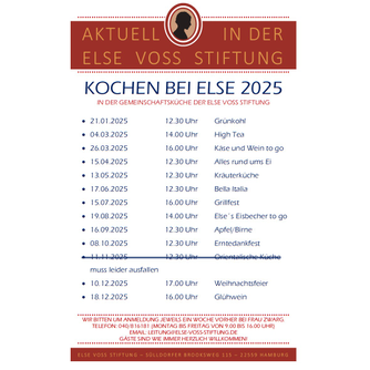 Wir bieten ein umfassendes und abwechslungsreiches Veranstaltungsprogramm an: Vorträge, Konzerte, Museumsbesuche, Filme, Ausflüge, Kochen bei Else, Bibliothek, Sport, Kaffeeklatsch, Grillfeste und vieles mehr.